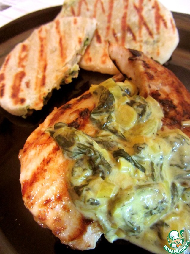 Хочу поблагодарить очередной раз Леночку за шикарное блюдо Полосатый гриль-комплект. Часть 1. Это вкусное куриное филе, приготовленное на гриле, с изумительным шпинатно-шафраново-сливочным соусом! https://www.povarenok.ru/recipes/show/56525/