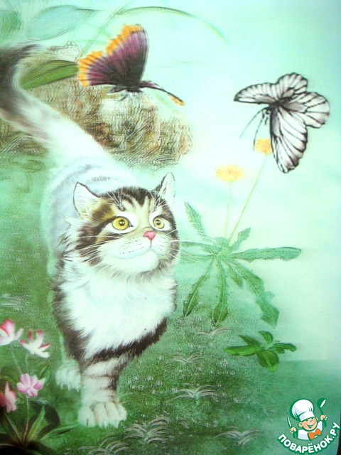 Бесподобная голографические картинка с кисочкой,бабочками и цветочками!Это такое чудо!Глаз не отвести!