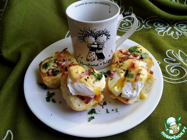 Завтрак в постель любимому мужу: яйца Бенедикт на тостах из "Воздушного картофельного хлеба" по рецепту Светочки.
