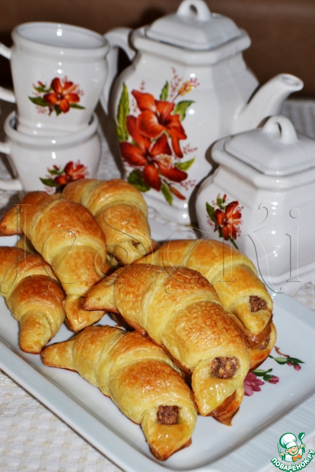 Ну и напоследок: "Рогалики "Поваренская дружба" Вы спросите почему такое название? А потому что треугольнички из теста вырезала девайсом, который подарила мне Ирочка (Ирушенька), а начинка ореховая - подарок от Ларочки (Kleine Hase) , ну а тесто мое