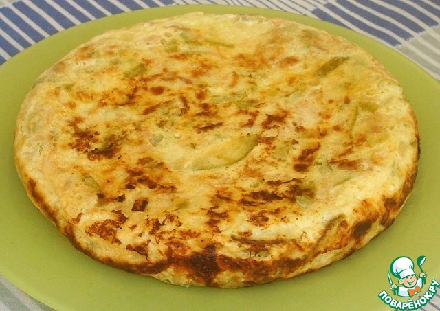 На сковороде для тортильи разогреть масло, вылить смесь, жарить с одной стороны, перевернуть и жарить с другой стороны до румяности.