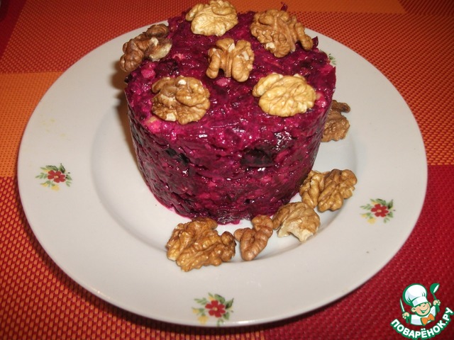 Когда-то очень давно в гостях меня угостили этим салатиком. Только из уважения к хозяйке я попробовала его и.. попросила добавки. Простой, сытный и легкий одновременно, со вкусом чернослива и грецких орехов. Приглашаю всех, кто любит эти продукты. [cut]