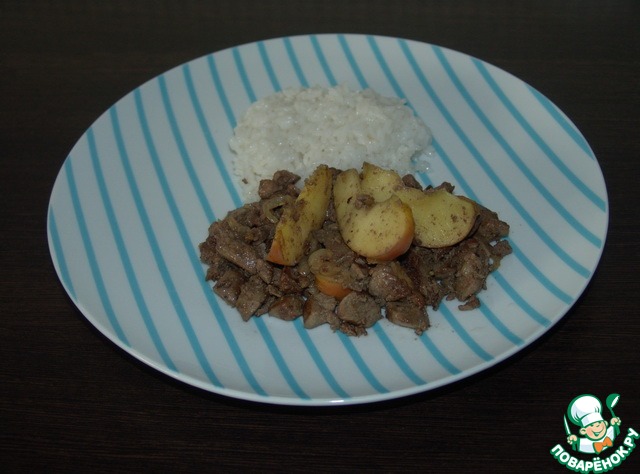 Куриная печень с яблоками от мисс https://www.povarenok.ru/recipes/show/56749/ Я люблю куриную печень. А в этом блюде, благодаря сочетанию яблок с душистым молотым перцем, она заиграла новыми вкусами. Мне больше понравилось с кислыми яблоками, а моей семье - со сладкими. Я не стала использовать никакую зелень, на мой вкус здесь она совершенно лишняя.