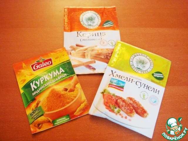 Обожаемые мной специи: хмели-сунели,корица и куркума!Да еще такие большие пакетики!