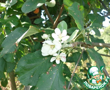 Вот, что я хочу вам всем рассказать. Вчера в день Яблочного Спаса мы заметили, что на яблоне помимо яблок есть еще цветы. Чудеса прям какие-то