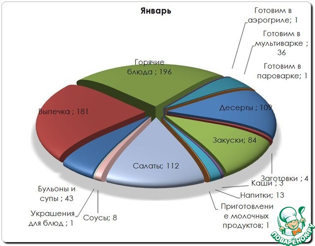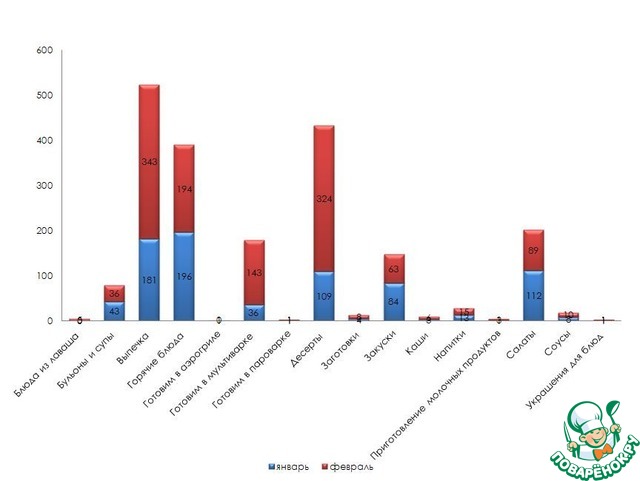 Предлагаю посмотреть какие рецепты (по категориям) публиковались в январе – феврале 2014 года. Для систематизации рецептов я взяла категории верхнего уровня.