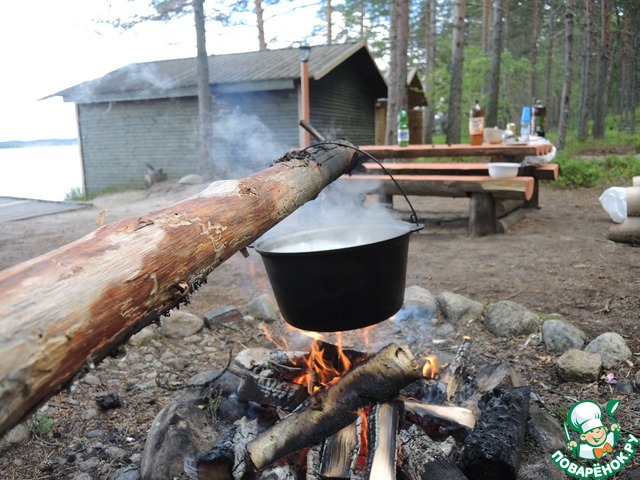 мой зять тоже варит уху на костре и в конце варки добавляет в нее водку, столовую ложку на небольшой котелок