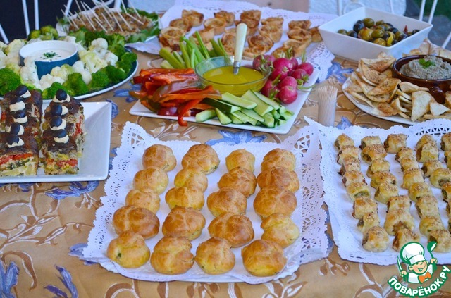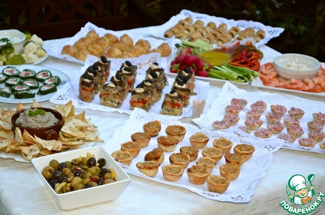 На этой неделе у меня прошел настоящий кулинарный марафон. Подруга доверила мне приготовить стол на её день рождения, на который были приглашены 35 человек. Планирование и закупки заняли 2 дня, а само приготовление – 4. Это была моя очередная попытка заняться кейтерингом, и, по-моему, прошла вполне успешно. Моя любимая еда (и готовить и поедать) – это finger food, канапе, маленькая еда. Она очень эстетичная и позволяет прочувствовать множество разных вкусов. На больших вечеринках, где люди не садятся за столы, такая еда самая удобная. Кроме того, необычные красивые блюда – это еще и отличный предмет беседы. Мы готовили вместе с мамой, без нее я бы ни за что не справилась. Вот что мы с ней вместе натворили: