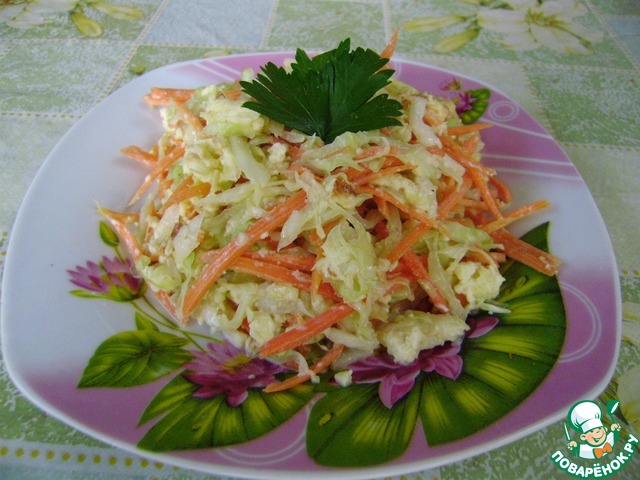 Очень вкусный салатик. Очень люблю салаты с капустой и с омлетом, но что их можно соединить вместе никогда бы не додумалась.