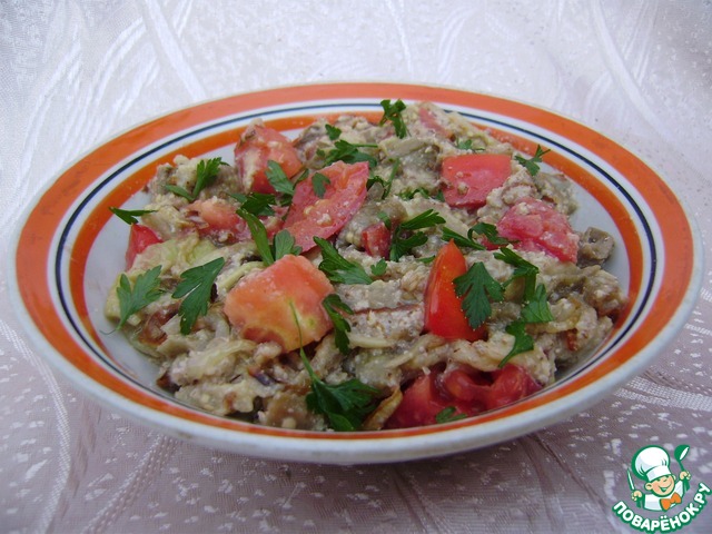 Великолепный салатик. Обожаю запеченные баклажаны. Мои мужчины не оценили, но зато мне все досталось.
