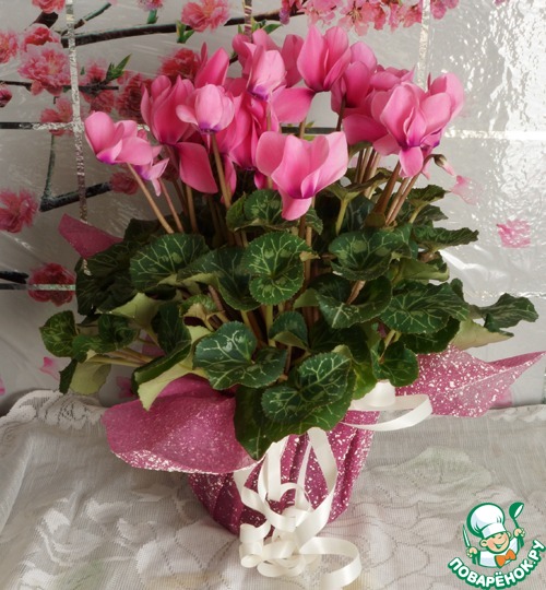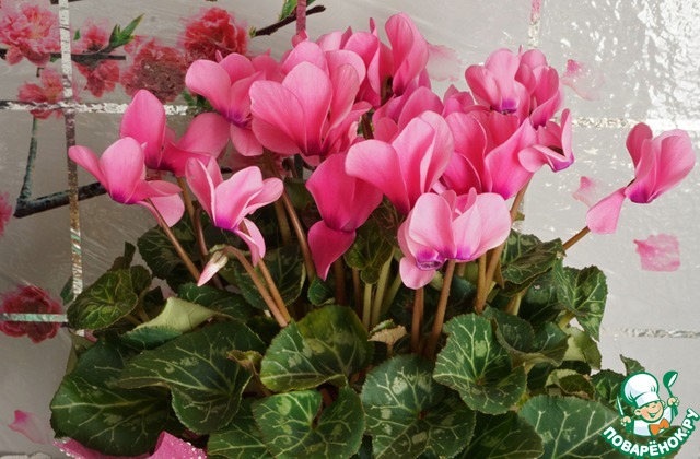 А вот этот красивый цветок Цикламен мне подарили на работе, буду теперь цветоводом,