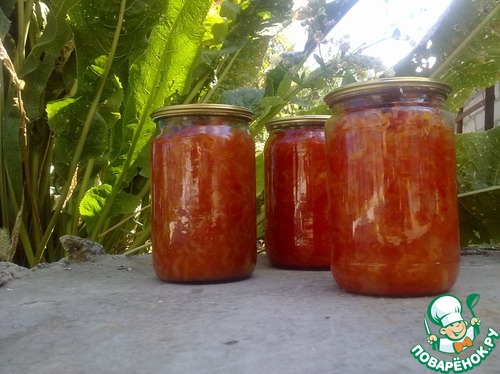 Ну и напоследок фото один из наших любимых салатов, которые делаем каждый год – это салат из бурелых помидоров. Хотела найти на сайте рецепт, чтобы поделиться ссылкой, да такого нет((( Пока у меня руки дошли до рецепта, девочки такой уже разместили.