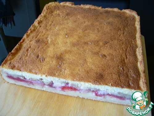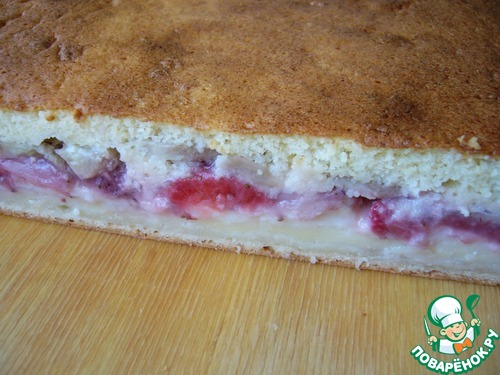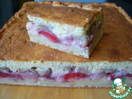 «Нежнейший клубничный пирог по рецепту best» .https://www.povarenok.ru/recipes/show/7485.Действительно,очень нежный пирог из творожного теста с клубникой и бананом