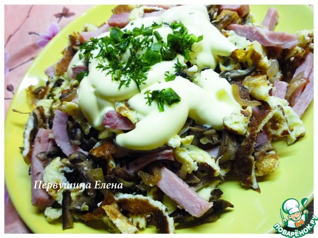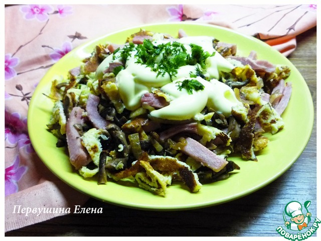 Грибной салат с блинчиками- салат наивкуснейший! Всем советую попробовать!