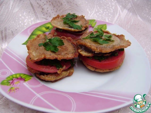 Обожаю баклажаны в кляре да еще с помидорчиком. Очень вкусно и свежо. Кляр бесподобный.