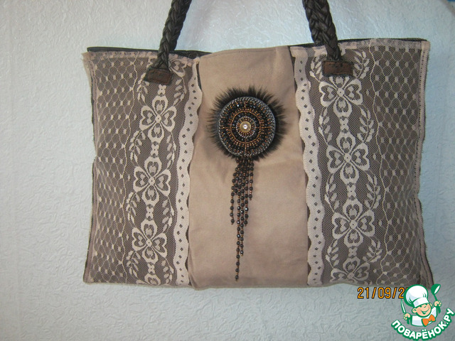 Как то раз пошла на рынок, новую сумочку захотела. Ходила, ходила, все какое-то одинаковое, черное. А то что интересное, боялась в руки взять. На них такие таблички "руками не трогать". Из золота они что ли? Повздыхала и полезла в Internet, затем на чердак за материалом. Первая моя проба, это старая дубленка, кусок кружева и пряжка с сапога. [cut]
