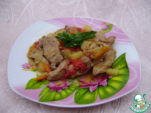 Свинина, запечённая с овощами, в мультиварке