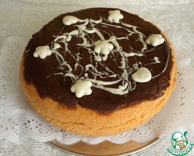 Разрезать корж на 3-4 части, промазать любым кремом, я крем делала вот по этому рецепту