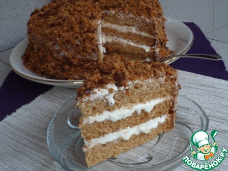 Тут целая история вышла. У Томочки все получилось шикарно, а у меня 1 час в мульти простояла и не допеклось тесто. Ну, что тут делать? Поставила еще на час, а когда начал бисквит запекаться- такой аромат по квартире разлился- обалдеть! Короче, на мощность мульти 800 Ватт и чашу 5 л. надо бисквит выпекать 2 часа и подержать под закрытой крышкой 20 мин. Я так рада, что у меня получился медовик! А вкус просто отменный – такое впечатление, что кушаешь орехи с медом! Спасибо, Тамара, мои сластены были очень довольны!