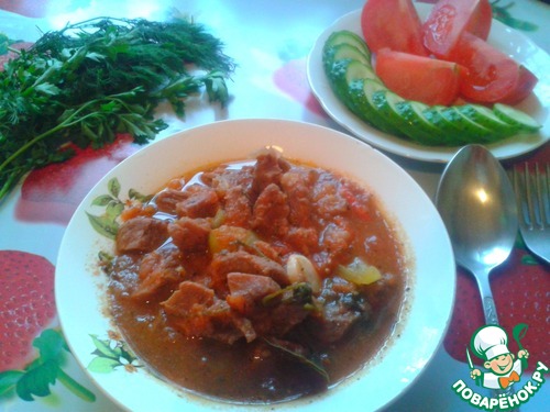 Чашушули по-грузински (говядина тушеная с помидорами, специями и травами)