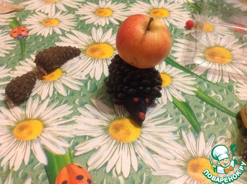 Ежик из пластилина и семечек- это я и сын. Яблочко настоящее.