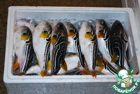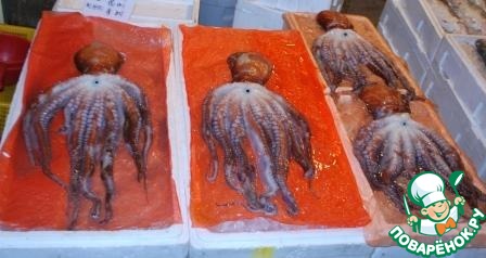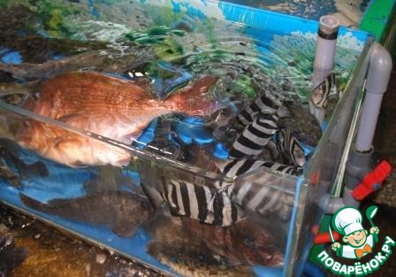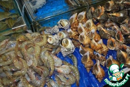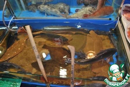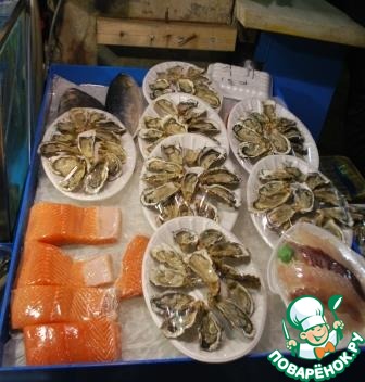 На прилавках во льду, в лотках, в аквариумах лежат и плавают рыбины, моллюски, крабы и прочие «морегады», названия которых для меня остались тайной.