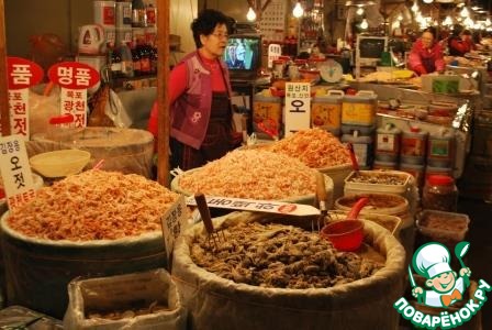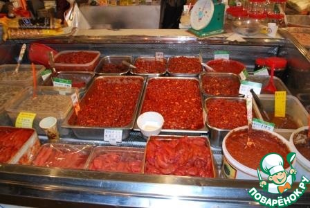 Там же продаются различные пасты из морепродуктов, рыбные соусы и еще много чего, что корейские хозяйки используют у себя на кухне.