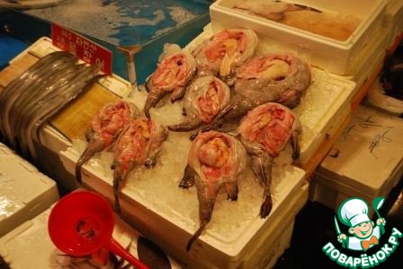 На рынке холодно, по сравнению с улицей. Да оно и понятно: рыба продукт скоропортящийся. Но никакого характерного запаха не было и в помине! Чистота потрясающая! Но вот в открытой или кожаной обуви тут лучше не ходить – рискуете промокнуть и схватить воспаление легких. Вся вода от подтаявшего льда, из аквариумов и шлангов, из коих моют продукт, стекает на бетонный пол. Я с тоской вспоминала свои дачные резиновые калоши, которые были бы тут весьма кстати!
