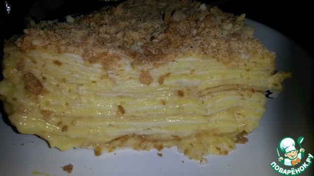 И на сладенькое(ну,не могу я без сладкого) Наполеон "мокрый" от Людмилочки Мил-чка.Шикарный,нежный,немного диетический торт. Я сейчас занялась проблемой своих зубов ,поэтому,этому торту я была безумно рада,после двух недель в кресле стоматолога))).Он очень мягкий,очень нежный!!!