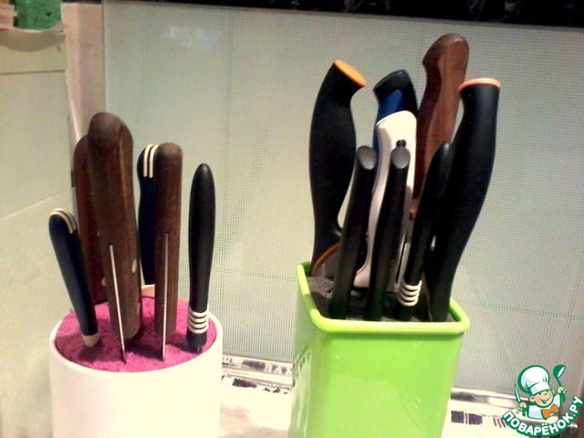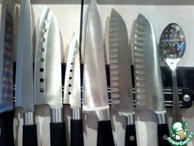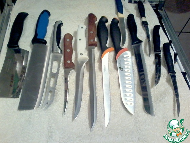 Зато, очень удобно. Не надо выделываться одним ножом, для всех продуктов.