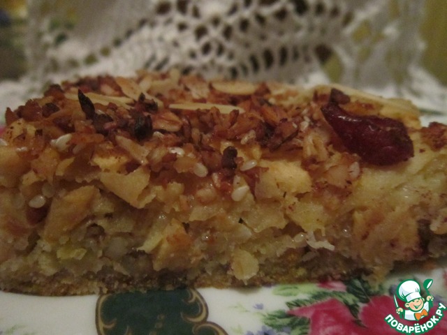 Начну с яблочного пирога "7 злаков" от Валерии Насыповой, вкуснота необыкновенная, правда фотография совсем темная, поздно уже, свет плохой