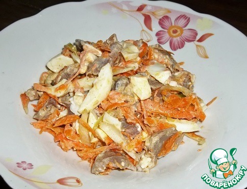 Салат «Радость Жеглова», от Евгении, JeSeKi, https://www.povarenok.ru/recipes/show/82433/ , очень просто и вкусно, для любителей корейской морковки самое то ( кстати, корейскую морковку делаю по рецепту Ляночки, иногда добавляю молотый имбирь)