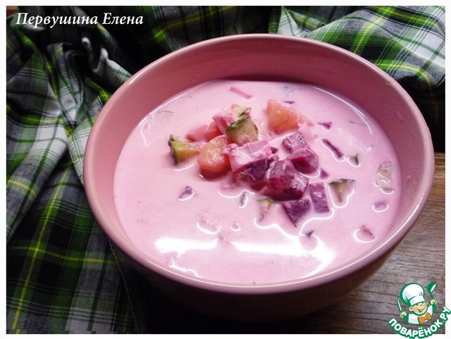 Свекольник с балыком, куриной грудкой и перепелиными яйцами "Краски лета" от Гали (Gal4oNek) - Было бабье лето, и так захотелось лета! Очень вкусный свекольник! Я делала без перепелиных яиц.