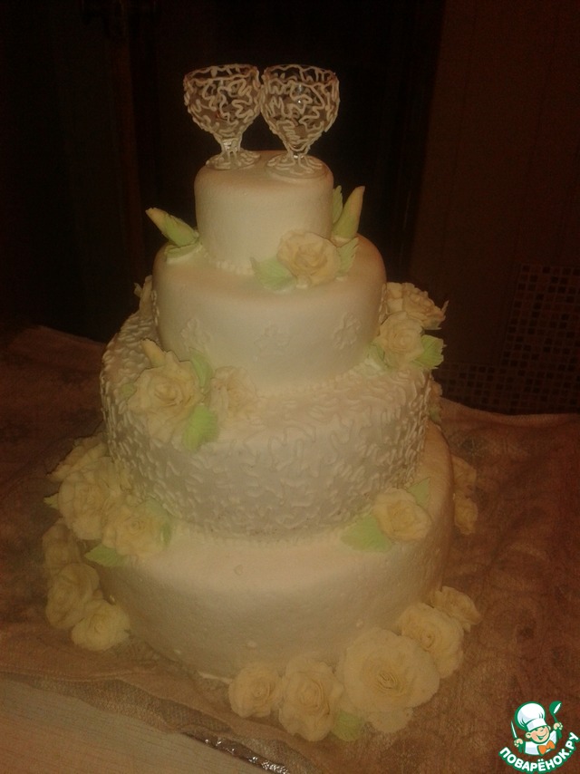 Это мое первое покрытие торта мастикой. На свадьбу двоюродной сестры.