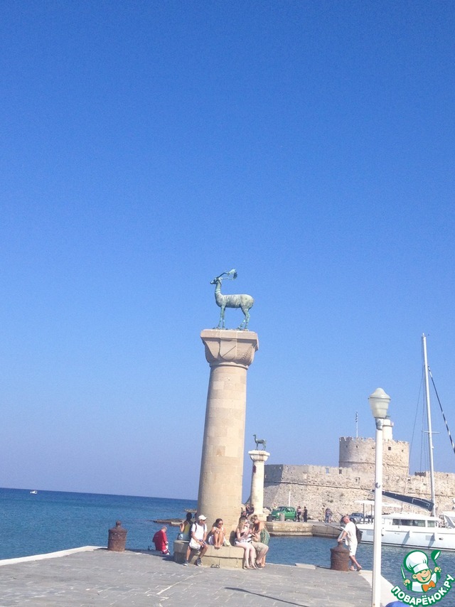 Виды города Родос, где по преданию находился Колосс Родосский - одно из 8 чудес света, прекрасный средневековый замок - Дворец Великого Магистра, предводителя рыцарского ордена. Прогуливаясь по его галереям будто попадаешь в эпоху средневековья. А так же олень и олениха-символы Родоса.