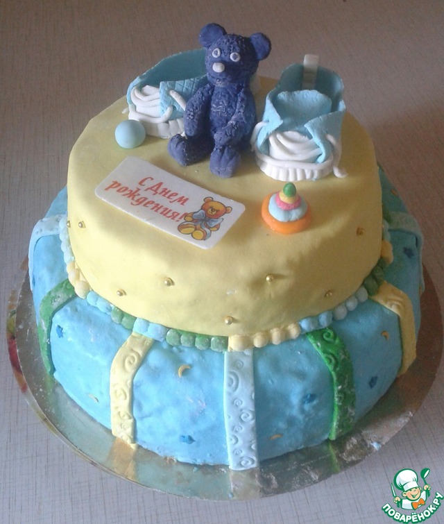 мой первый торт на заказ. Для мальчика 2-х лет, который потом не хотел отдавать торт на съедение, а хотел с ним поиграть.