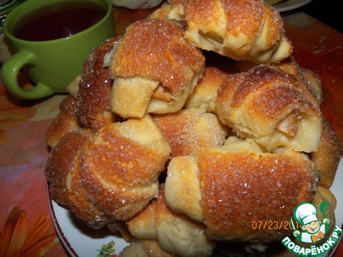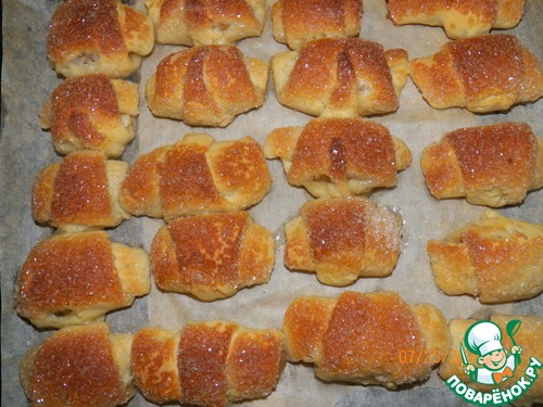 Обожаемые мной и всеми домочадцами восхитительные рогалики. Сколько их не приготовь, все съедается.Пекла много раз все время с яблоками. Спасибо Наташе.