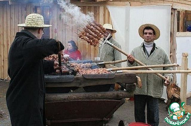 Сам делал, никто не отличил! Маринуешь, ставишь на вторую полку сверху, врубаешь на полную турбо-гриль, 8-10 мин. Обязательно деревянные шпажки. Они подгорают, отсюда и дымок, как от костра!