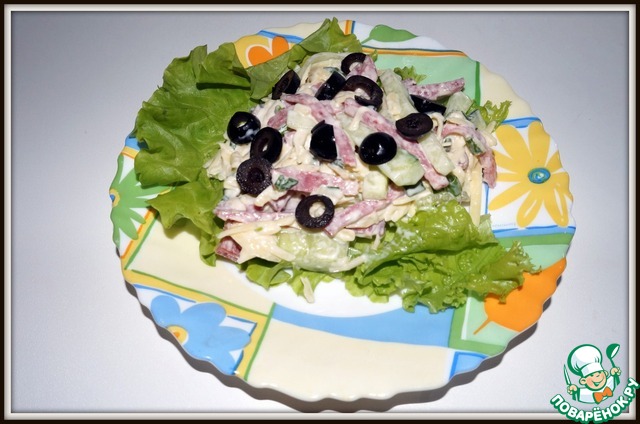 Салат "Нежный" от Кати kotenochkin.Действительно нежный,вкусный и сытный салатик.Я делала с колбаской копченой вместо ветчины,вкусно!