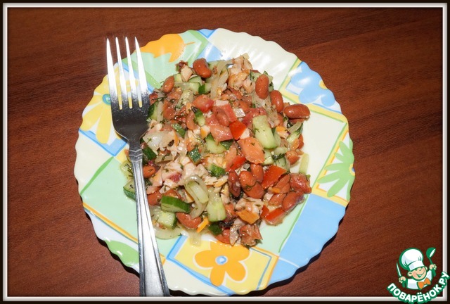 Салат "Калейдоскоп" от Ирины dog-rose . Тоже очень замечательный салат,с копченой курочкой хорошо получилось!