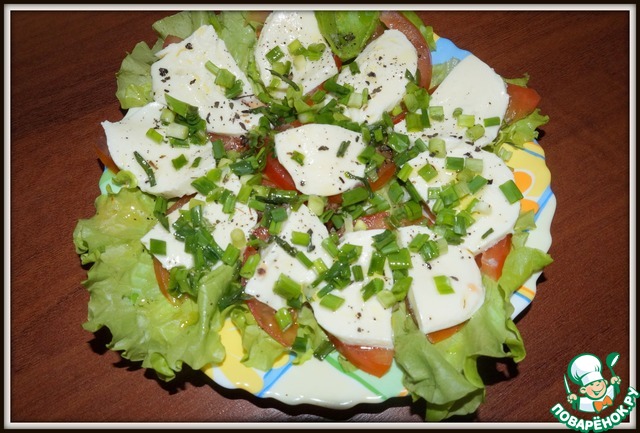 Помидоры с моцареллой от StaSy-90 ,к сожалению имени не знаю. Хорошая подача легкой и вкусной закуски.Съели моментально!