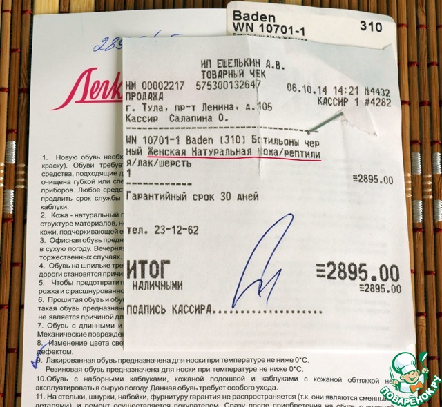 А к чему я это все пишу и анекдоты вспомнила, вот на днях посчастливилось мне купить замечательные сапожки, это чек с покупки