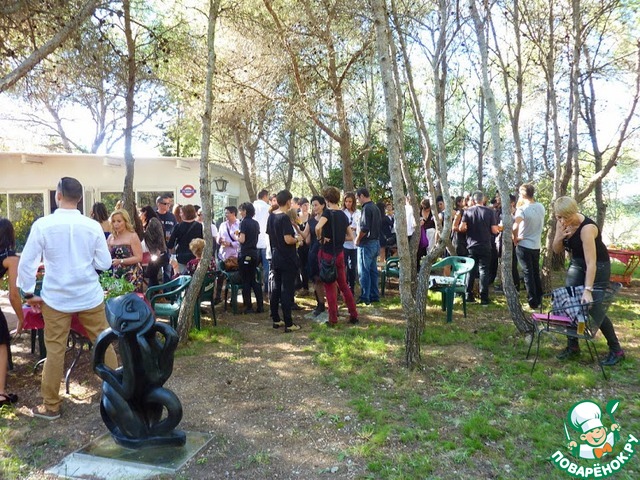 ), пришлось опять гонять людей за дополнительными тарелками. Теперь моя задача была убирать пустые блюда, стаканы, салфетки, наполнять тарелки заново и в целом поддерживать красоту столов. Народ заметно добрел. Нервные родители молодоженов заулыбались и расслабились. Комплиментов было очень много. Жених с невестой тоже были очень довольны. Одна женщина сказала, что если бы готовили испанцы, на столах бы была только тортилья и хамон. Когда дело дошло до горячего, все были фактически сыты, и кари с рисом ели очень мало. Из 4 пачек риса сварили только одну. Две трети горячего остались нетронутыми, но заказчики были этому вполне рады, потому как теперь им не придется готовить неделю. Тем не менее, десерту все были очень рады, и сладкое съели всё. Гости начали уходить около восьми (никто никому даже морду не набил), а потом началась большущая уборка. Мы с мамой спокойно вздохнули, выпили вина и хохотали всю дорогу домой.