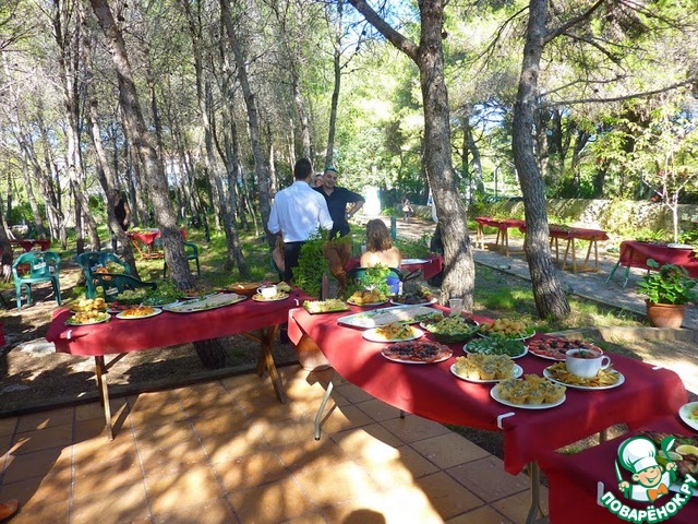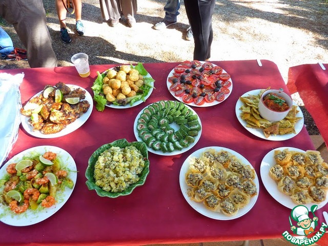 По прибытию на место свадьбы у меня началась паника и стало тяжеловато дышать. Одна мысль о том, что еды окажется недостаточно, просто сводила с ума. Руки тряслись, и было тяжело делать мелкую работу. Вспомнилась интерпретация известной поговорки: «Глаза боятся, а руки трясутся». Я выпила пол-бутылки холодной минералки и взяла себя в руки. Потом пришли пять человек мне на помощь, и стало спокойнее. Женщины начиняли корзиночки, резали и выкладывали рулет и делали другую мелкую работу. Мужчины занимались грилем и нарезкой. Мама делала некоторые вещи дома, начиняла эклеры и обжаривала блины. Одна из моих помощниц оказалась очень неаккуратной. Мне не нравилось, как она режет помидоры, как раскладывает анчоусы, но было неловко ей говорить об этом, поэтому пришлось просто ее отвлечь и переключить на переноску готовых блюд из кухни на столы. Угли почему-то сгорели очень быстро, и была пожарена только половина мяса. Пришлось срочно высылать людей за дополнительными углями. К 2.30 все закуски и холодные блюда стояли на столах.