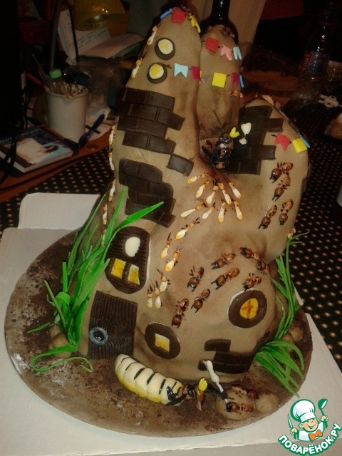 Когда ее открыли, то что это торт было понятно но в форме чего, не совсем, я решила, что это какое-то архитектурное сооружение,так как она является сферой наших общих интересов, оказалась таки да, термитник отчасти тоже является рукотворным или вернее будет сказать "лапотворным" шедевром!