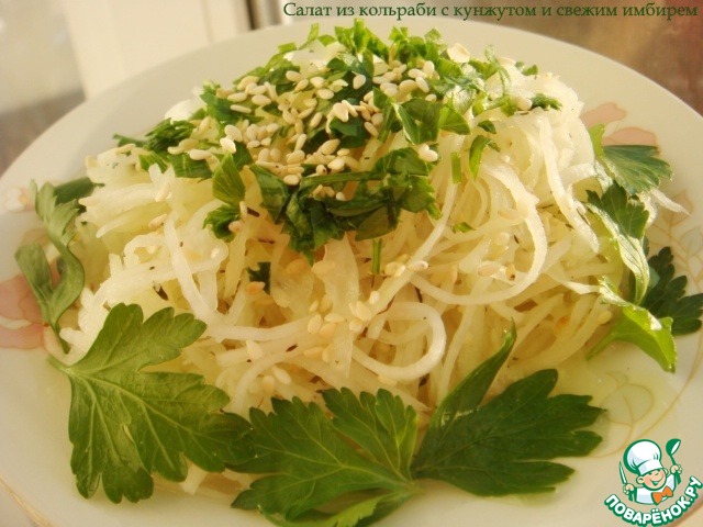 Вкусный,сочный,ароматный и очень полезный Салат из кольраби с кунжутом и свежим имбирём по рецепту Ларисочки Kleine Hase.Оторваться невозможно!