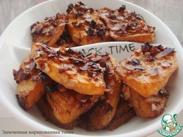 Запечённая маринованная тыква по рецепту Мариночки gerardina - очень вкусное,ароматное и полезное блюдо!Настолько гармоничный вкус,что рука так и тянется за очередным кусочком!