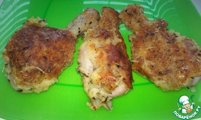 Куриные голени в панировке из свежего хлеба с пармезаном, моцареллой и прованскими травами от Оленьки (Olena731). Ароматные и вкусные голени с пикантной сырной корочкой. Вкусно!