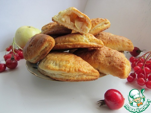 И , так уж вышло, довольно-таки большая сладкая часть моего отчета... Пирожки из творожного теста https://www.povarenok.ru/recipes/show/75800 от Esenija. Действительно, очень интересное тесто! Послушное и воздушное! Моя начинка: яблоки с корицей, хочу еще попробовать с какой-нибудь несладкой начинкой. В общем, взяла это тесто на заметку!