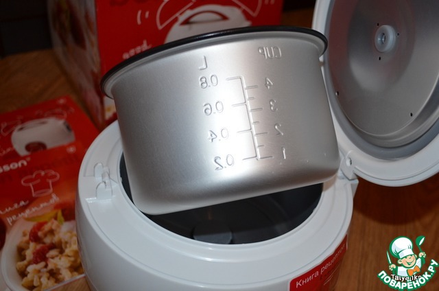 Итак,мультиварка-кашеварка,объемом 0,7 литр. С книгой рецептов,стаканчиком и ложечкой.